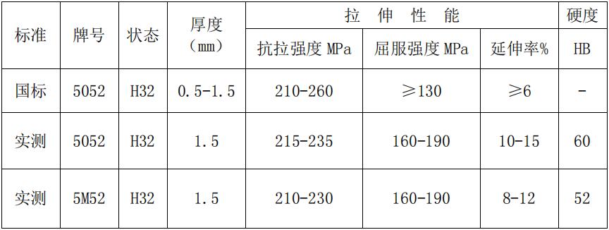 3、5052、5M52鋁合金材料的折彎、成形對比